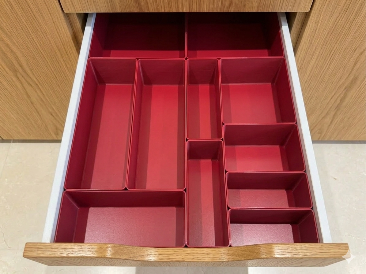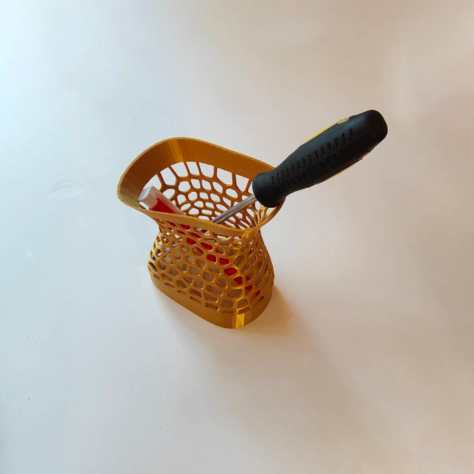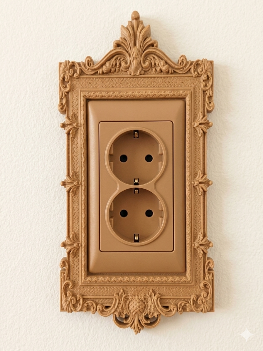 Vaasid, lillepotid, erinevad organaiserid ja hoidjad, dekoratiivsed erikujulised valgustid, mööblikäsipuud, erinevad konksud, pistikupesade, lülitite jms välised dekoratiivkorpused, moodsad dekoratiivelemendid, laua- ja seinalambid.