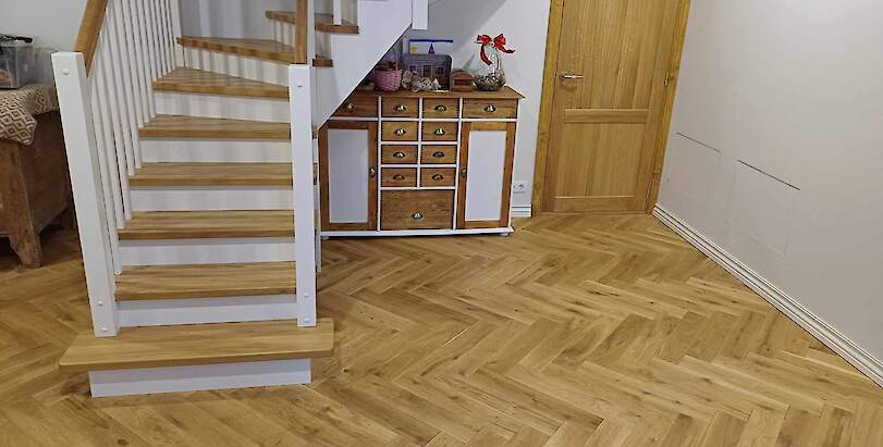 Wood parquet, floorboards, fishtail parquet, French fishtail parquet, mouldings, solid oak interior doors, window sills, stair treads, worktops, kitchen worktops.